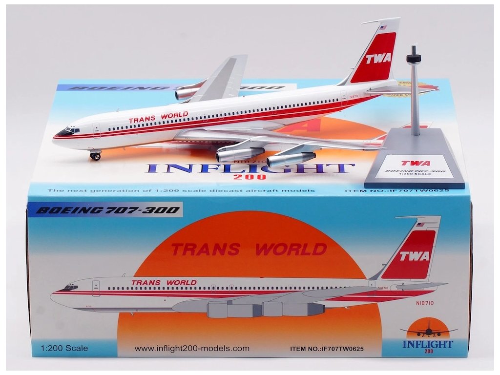 Boeing 707 byl prvním komerčně úspěšným proudovým dopravním letadlem a TWA patřila mezi jeho hlavní uživatele. Model představuje variantu 707-331B, která sloužila především pro dálkové transatlantické lety.